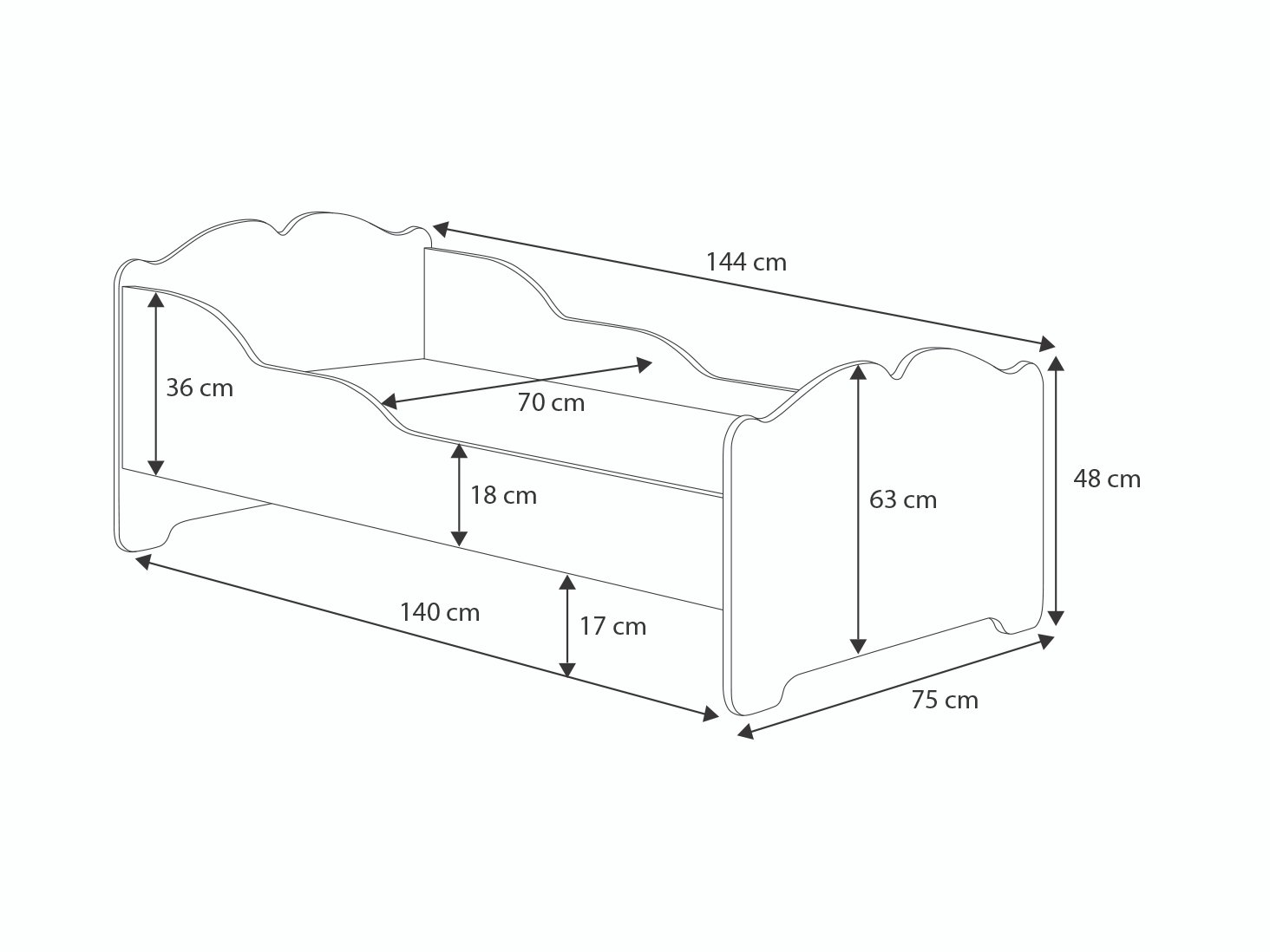 • Safe design – rounded edges minimise the risk of injury during sleep and play.