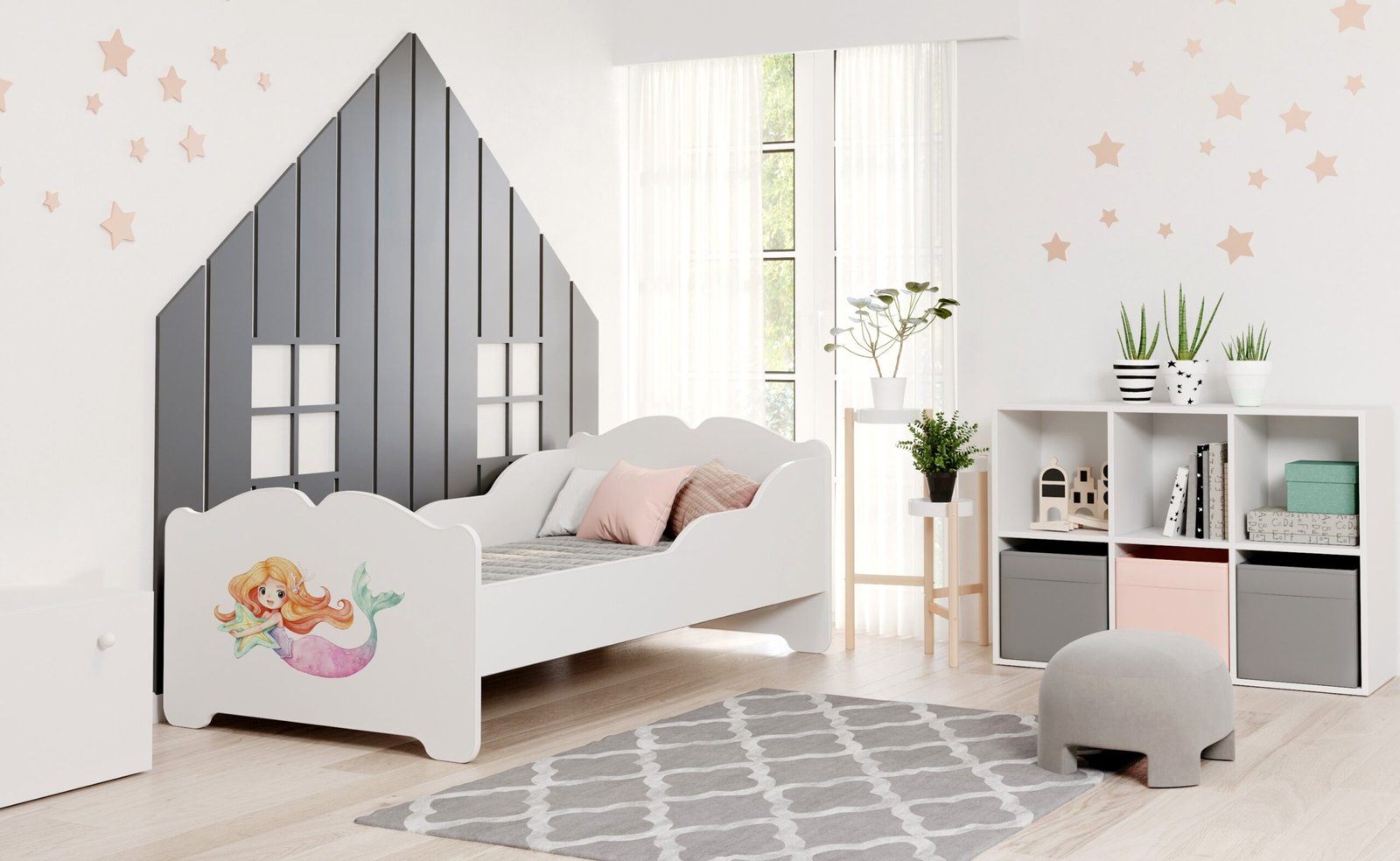 The ANNA girls’ bed in size 160×80 combines functionality, safety and aesthetics. In classic white with a charming girly print on the footstool, it will fit perfectly into a child’s space, creating a cosy and stylish place to sleep.