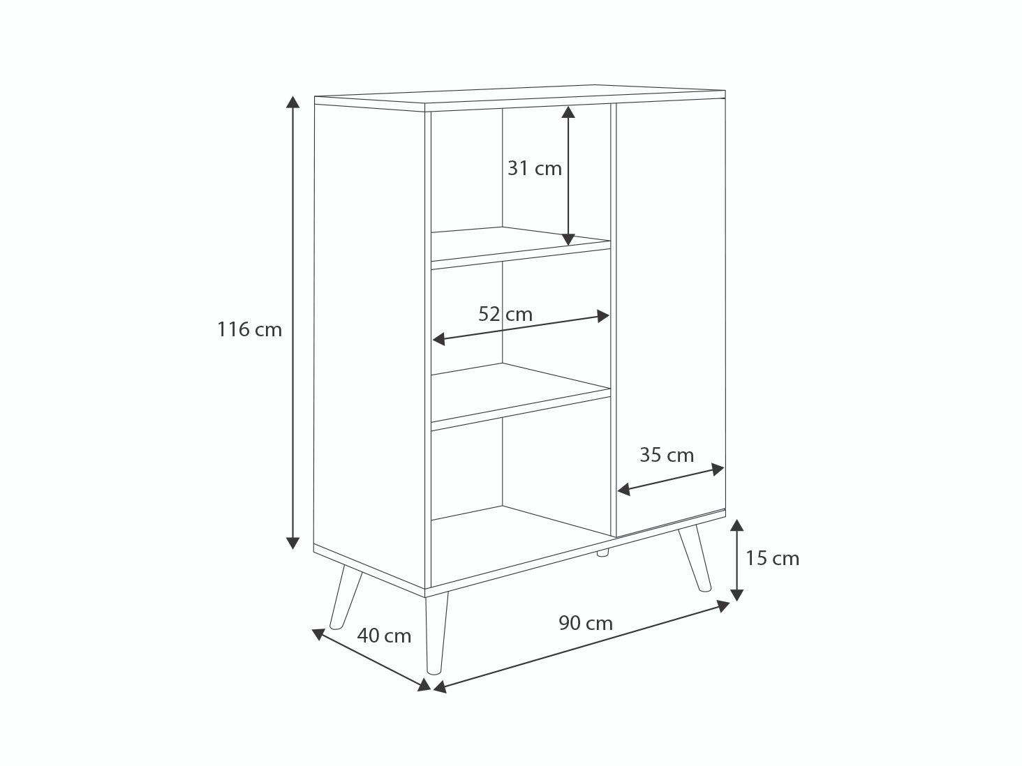 The FONDI cabinet is an extremely practical piece of furniture that combines simplicity with Scandinavian-inspired aesthetics. Thanks to its elegant design, this cabinet blends in perfectly with modern interiors, giving them a light and fresh feel. Its spacious shelves allow you to display your favourite ornaments, books or photos, making it possible to personalise your interior and add a unique touch. The practical storage compartments help to keep things tidy by offering space for storing a variety of items.