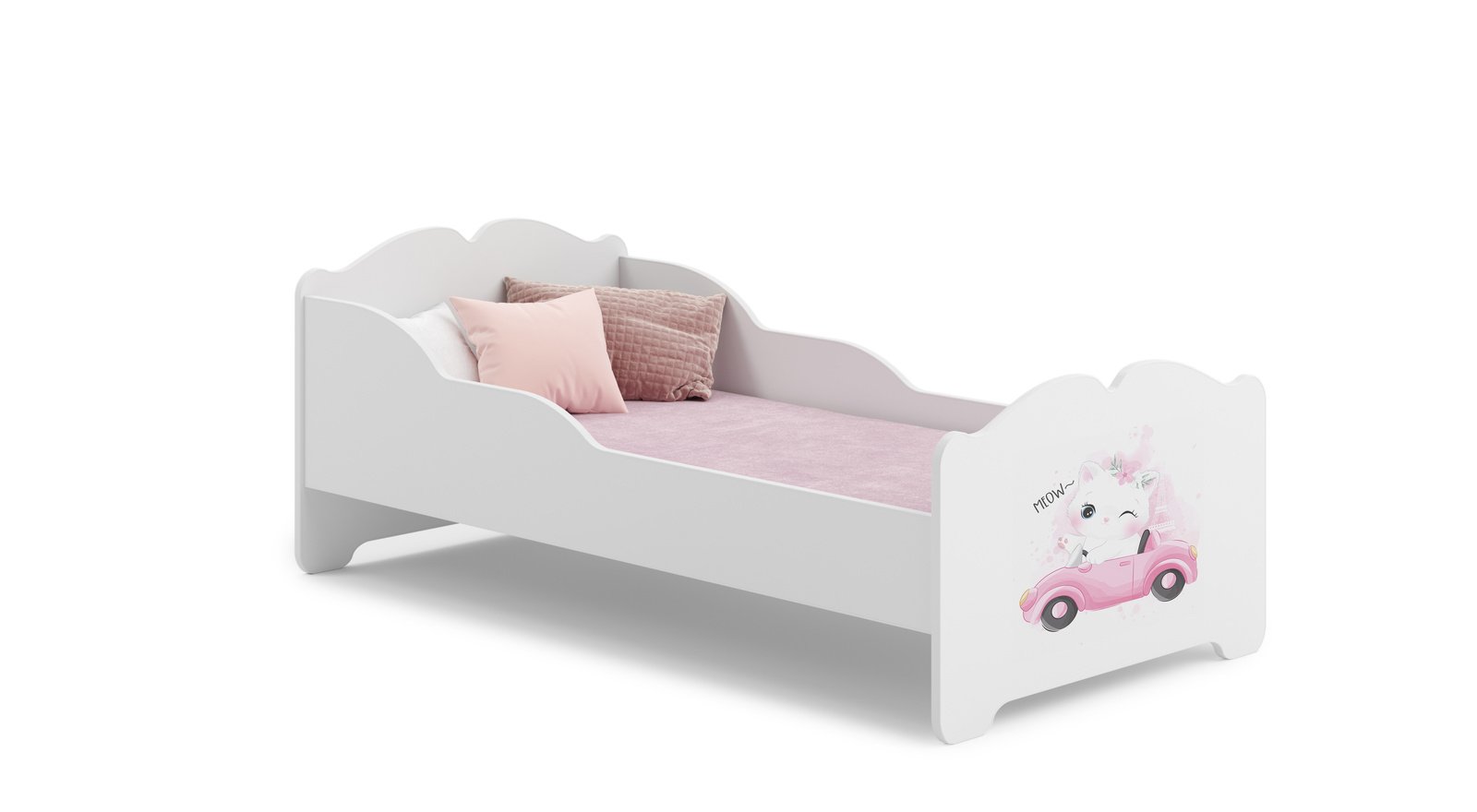 The ANNA girls’ bed in size 140×70 combines functionality, safety and aesthetics. In classic white with a cute girly print on the footstool, it will fit perfectly into a child’s space, creating a cosy and stylish place to sleep.