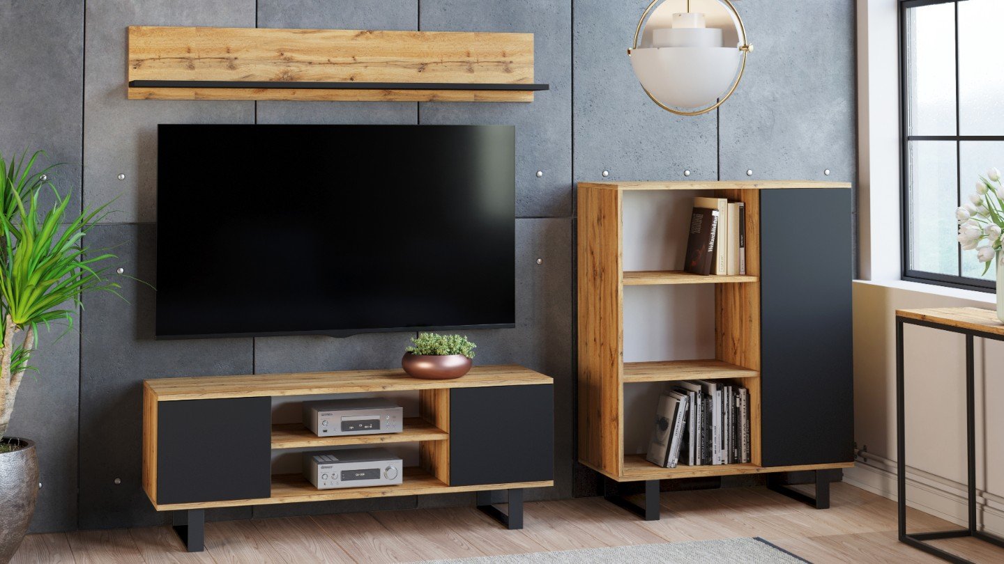 The FOCUS model has been designed with maximum functionality and aesthetics in mind. Thanks to its well-thought-out design, it offers shelves and lockable cabinets to accommodate books, newspapers, remote controls, as well as multimedia equipment such as set-top boxes or games consoles. In addition, the modern design and fashionable finish make the cabinet a decoration of any interior. Its neutral colour scheme makes it easy to fit into a variety of arrangements – from minimalist to more classic.