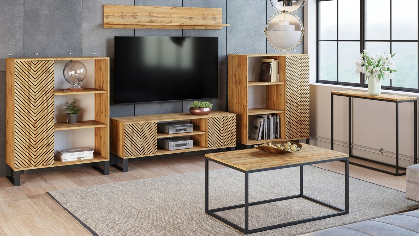 The FONDI cabinet is an extremely functional piece of furniture for your living room that combines simplicity with an eye-catching loft-inspired look. With its minimalist forms and raw materials such as metal elements and wood, this cabinet brings a unique atmosphere and character to the interior. It is the ideal solution for those who value practicality and modern design in one. The FONDI cabinet is both functional and aesthetically pleasing, offering storage space and the opportunity to display your favourite ornaments.