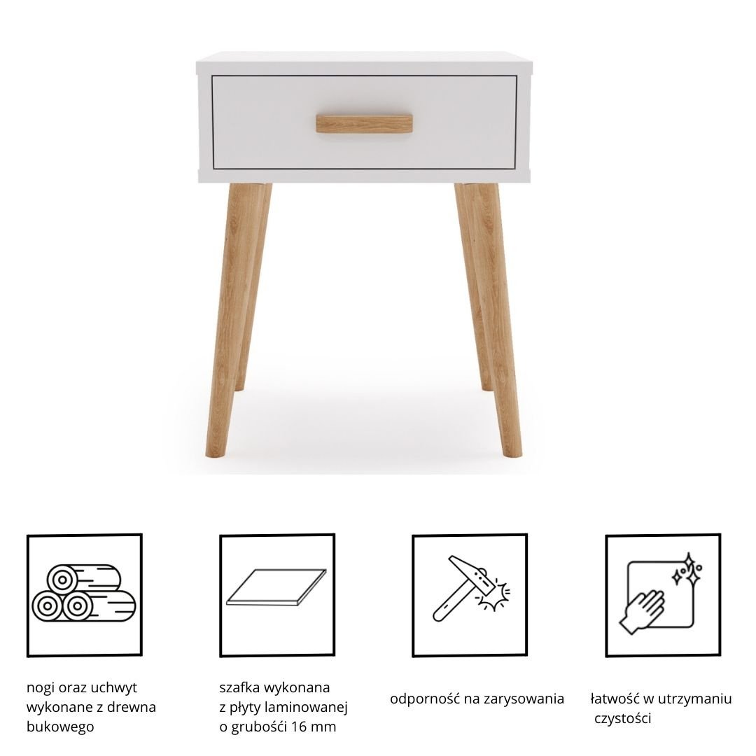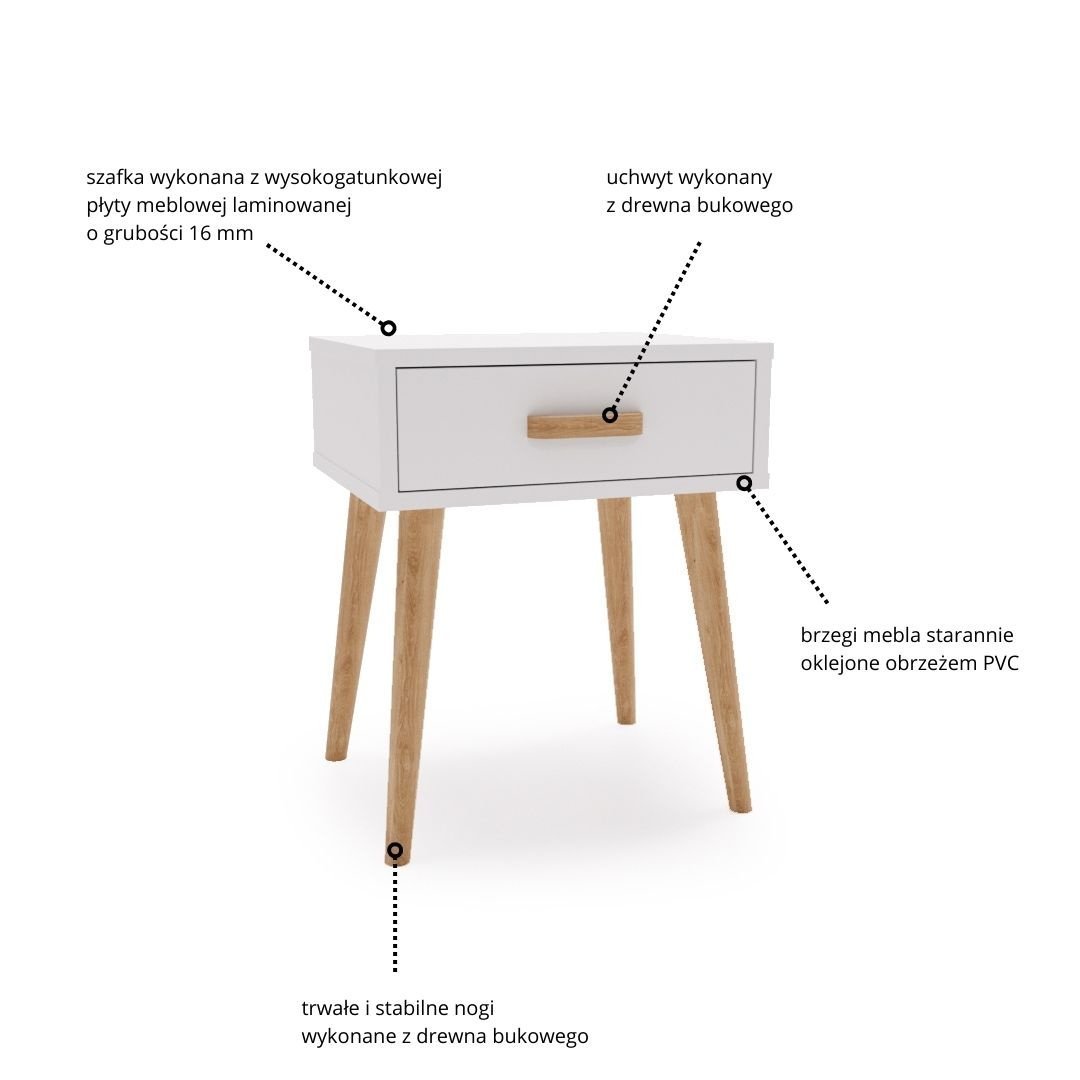 LUNA is more than just a bedside table – it is a practical solution that makes it easier to organise your daily items. You can place a bedside lamp, alarm clock or decorations on its surface, and the capacious drawer will allow you to store small items you want to have at hand before going to bed. Carefully selected materials guarantee durability, and the attention to detail makes the furniture look elegant and modern. Stable wooden legs give it lightness and ensure durability, making it not only a beautiful but also a functional addition to your interior.