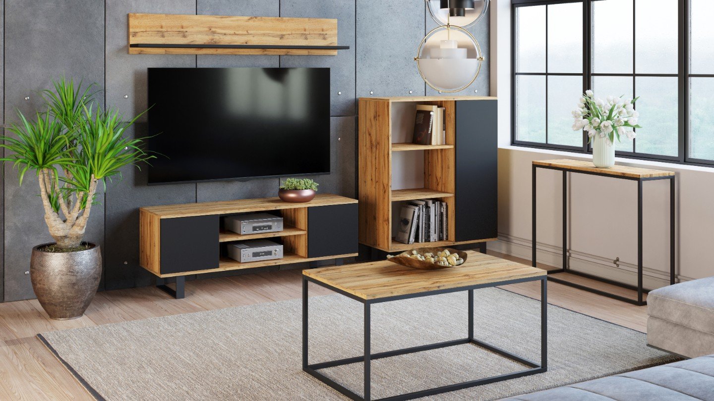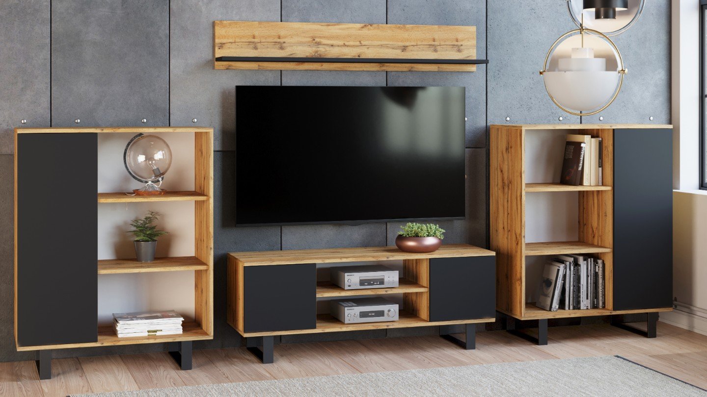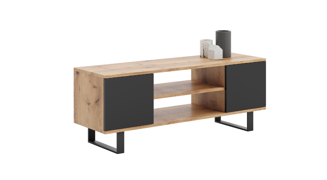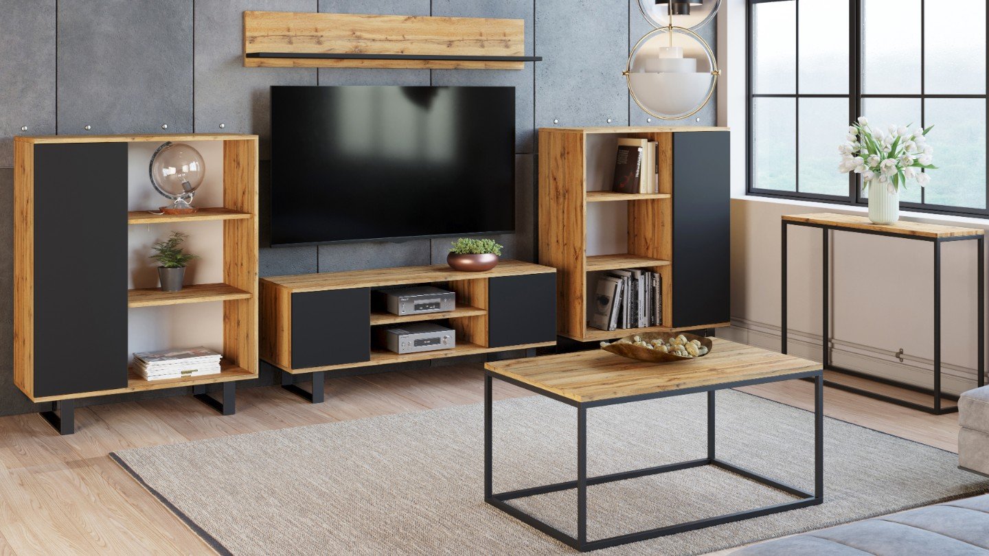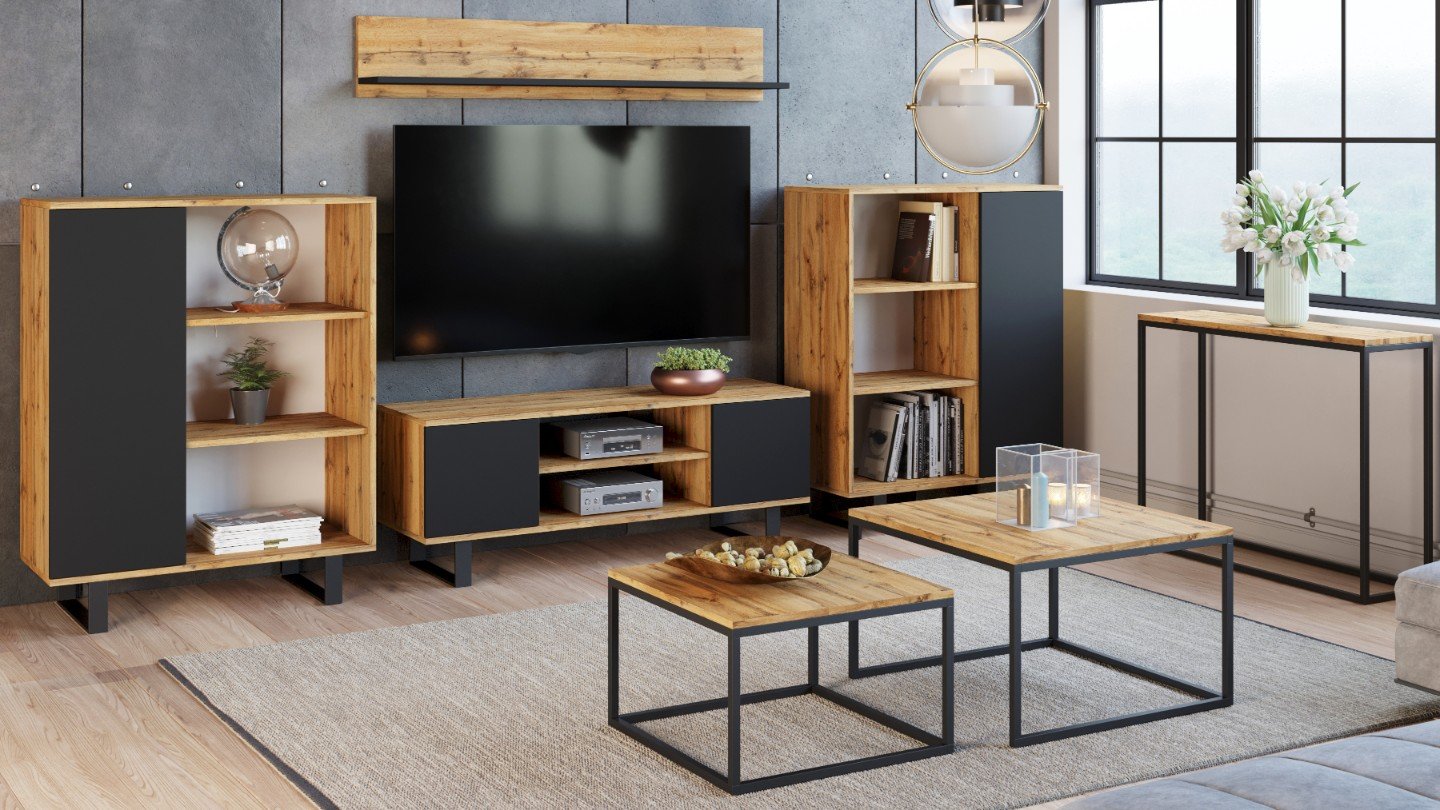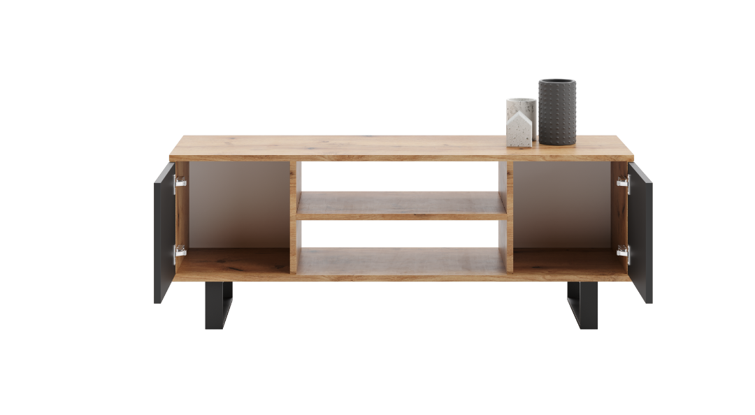 The FOCUS model has been designed with maximum functionality and aesthetics in mind. Thanks to its well-thought-out design, it offers shelves and lockable cabinets to accommodate books, newspapers, remote controls, as well as multimedia equipment such as set-top boxes or games consoles. In addition, the modern design and fashionable finish make the cabinet a decoration of any interior. Its neutral colour scheme makes it easy to fit into a variety of arrangements – from minimalist to more classic.