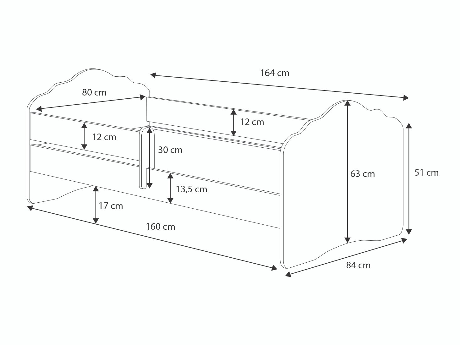 The bed is made of durable materials – solid furniture board, carefully finished with PVC edging, which guarantees stability and longevity of the structure. Thanks to the FLEX frame, constructed of spring slats, it provides optimal support for the spine and a comfortable sleep. It comes with a 7 cm thick foam mattress with a removable cover, making it easy to keep clean and hygienic.