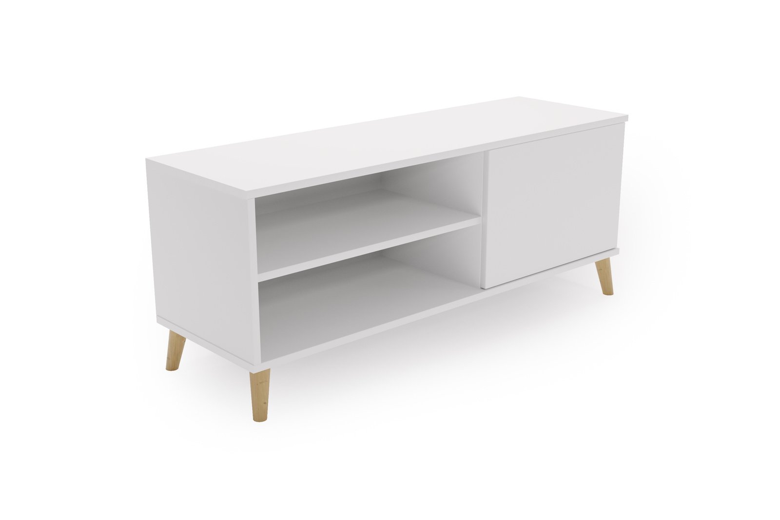 The Scandinavian style RTV cabinet is a combination of functionality, simplicity and elegance, which perfectly matches both modern and classic interior arrangements. Its white colour and minimalist design bring freshness to the space, optically enlarging it and harmoniously blending in with the rest of the living room furnishings.
